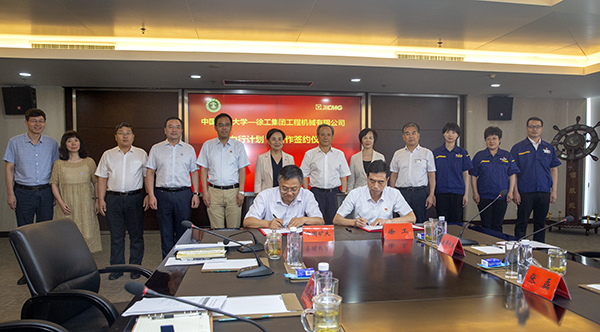 7月2日上午,我校与徐工集团工程机械有限公司在徐工总部举行“力行计划”合作签约仪式。校党委书记刘波,副校长卞正富、周福宝,徐工有限、徐工机械董事长、党委书记王民,徐工机械副总裁李锁云等出席签约仪式。